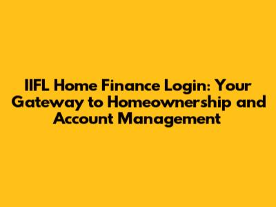 IIFL Home Finance Login: Easy Access & Account Management