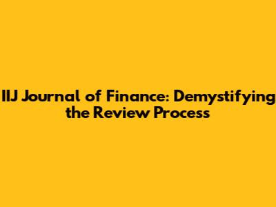 IIJ Journal Of Finance: Demystifying The Review Process