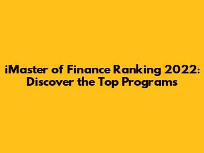 IMaster Of Finance Ranking 2022: Top Programs