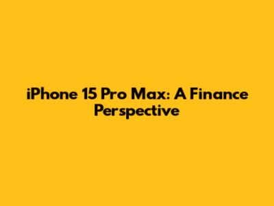 IPhone 15 Pro Max: A Finance Perspective