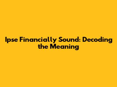 Ipse Financially Sound: Decoding The Meaning