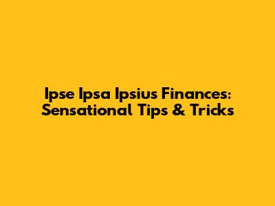Ipse Ipsa Ipsius Finances: Sensational Tips & Tricks