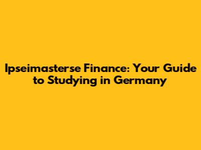 Ipseimasterse Finance: Your Guide To Studying In Germany
