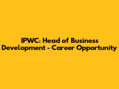IPWC: Head Of Business Development - Career Opportunity