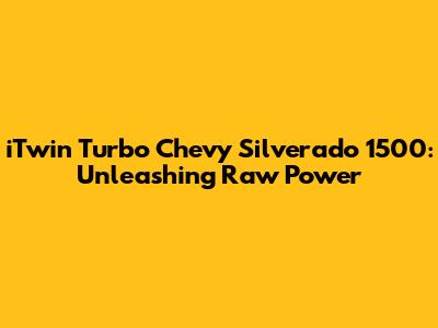 Hey gearheads! Ever dreamed of transforming your Chevy Silverado 1500 into a beast that dominates the road? Well, buckle up, because we're diving deep into the world of iTwin turbocharging – a game-changer for your truck's performance. We're talking about a significant power boost, improved acceleration, and a driving experience that'll leave you grinning from ear to ear. This article is your comprehensive guide to understanding, installing, and enjoying the incredible power of an iTwin turbo system on your Chevy Silverado 1500. We'll cover everything from the basics of turbocharging to the specifics of iTwin systems, ensuring you have all the knowledge you need to make an informed decision and take your truck to the next level. Let's get started!