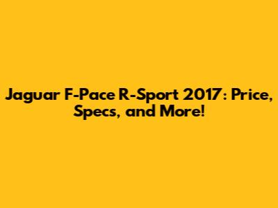 Jaguar F-Pace R-Sport 2017: Price, Specs, And More!