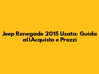 Jeep Renegade 2015 Usata: Guida All'Acquisto E Prezzi