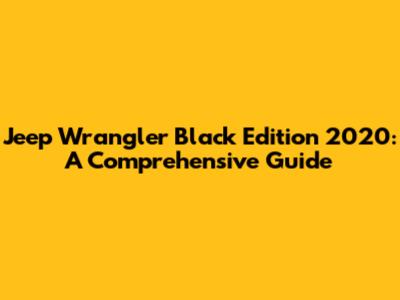 Jeep Wrangler Black Edition 2020: A Comprehensive Guide