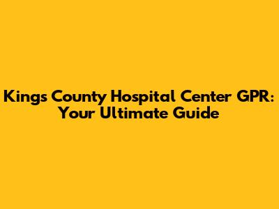 Kings County Hospital Center GPR: A Comprehensive Guide