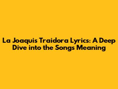 Hey music lovers! Today, we're diving deep into the lyrics of "Traidora" (Traitor), a song by the incredibly talented La Joaqui. This track has been making waves, and for good reason! The song is a rollercoaster of emotions, and the lyrics offer a glimpse into the complexities of relationships, trust, and betrayal. Ready to unravel the story behind La Joaqui's hit? Let's get started!