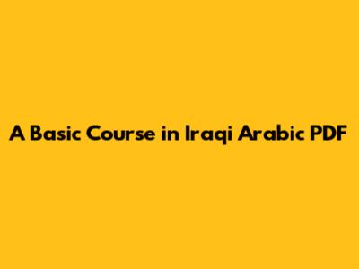 Learn Iraqi Arabic: A Basic Course PDF