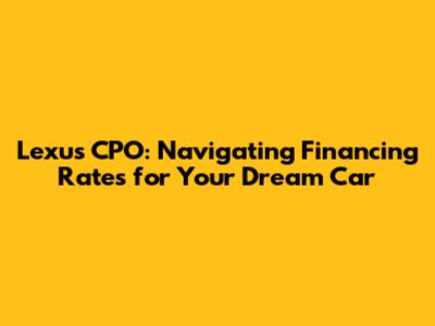 So, you're eyeing a Lexus Certified Pre-Owned (CPO) vehicle? Great choice! You're getting a luxury car with a stamp of approval, but let's be real, financing is a big part of the equation. Understanding Lexus CPO financing rates is crucial to making a smart decision. This article dives deep into what you need to know to secure the best possible rate and drive away in your dream Lexus without breaking the bank. Financing a CPO Lexus is similar to financing a new car, but there are some key differences that can impact your interest rate and overall loan terms. Factors like your credit score, the age and mileage of the vehicle, and the loan term you choose all play a role. We'll break down these factors one by one, giving you the knowledge you need to negotiate effectively and get the most favorable financing deal available. Remember, knowledge is power! The more you understand about the financing process, the better equipped you'll be to make informed decisions and avoid any potential pitfalls. Don't just jump at the first offer you see; shop around, compare rates, and make sure you're getting the best possible deal for your individual circumstances. We'll also explore some strategies for improving your chances of getting approved for a low-interest loan, even if your credit history isn't perfect. We're here to help you navigate the often-complex world of auto financing and make the process as smooth and stress-free as possible. Because let's face it, buying a car should be an exciting experience, not a financial headache! By understanding the ins and outs of Lexus CPO financing rates, you'll be well on your way to driving off the lot in your dream car with confidence.