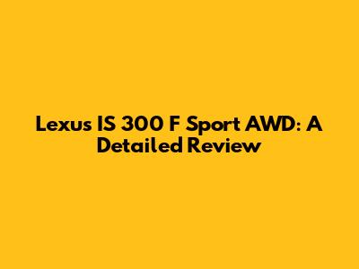 Lexus IS 300 F Sport AWD: Review, Specs, And Performance