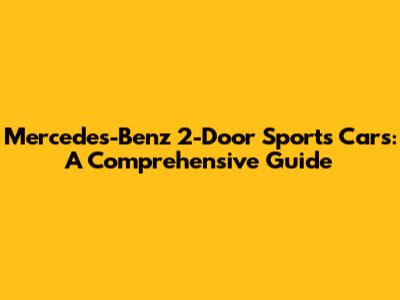 Mercedes-Benz 2-Door Sports Cars: A Comprehensive Guide