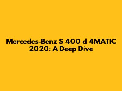 Mercedes-Benz S 400 D 4MATIC 2020: A Deep Dive