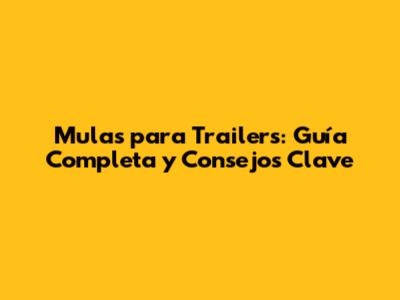Mulas Para Trailers: Guía Completa Y Consejos Clave