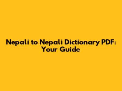 Nepali To Nepali Dictionary PDF: Your Guide