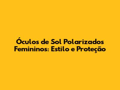 Óculos De Sol Polarizados Femininos: Estilo E Proteção