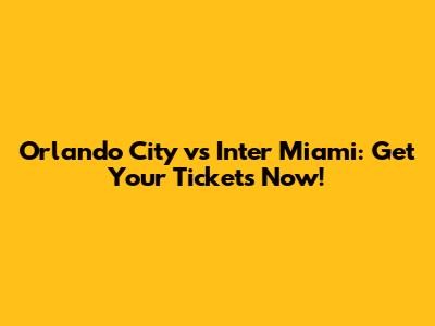 Orlando City Vs Inter Miami: Get Your Tickets Now!