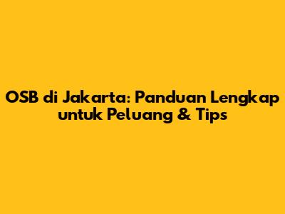 OSB Di Jakarta: Panduan Lengkap Untuk Peluang & Tips