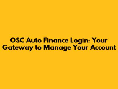 Step-by-Step Guide to OSC Auto Finance Login
