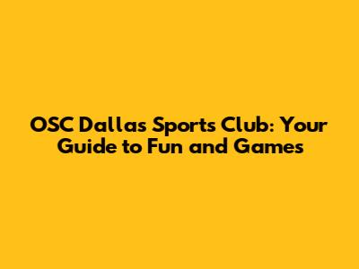 OSC Dallas Sports Club: Your Guide To Fun And Games