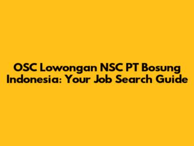 OSC Lowongan NSC PT Bosung Indonesia: Your Job Search Guide