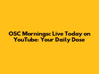 OSC Morningsc Live Today On YouTube: Your Daily Dose