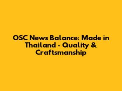 OSC News Balance: Made In Thailand - Quality & Craftsmanship
