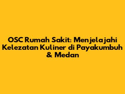 Hey guys! Pernah gak sih kalian kepikiran, kalau lagi di rumah sakit, pengen juga dong tetep bisa nikmatin makanan enak? Nah, kali ini kita bakal bahas tentang OSC Rumah Sakit dan gimana caranya kalian bisa tetap explore kuliner lezat di Payakumbuh dan Medan, bahkan saat lagi ada urusan di sana. Jadi, buat kalian yang penasaran, yuk simak terus artikel ini!