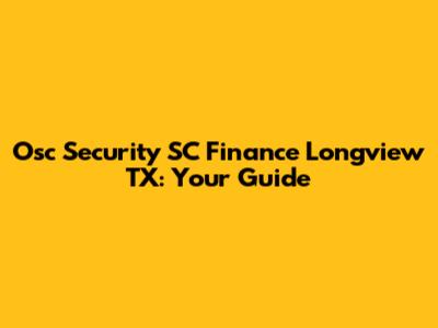 Osc Security SC Finance Longview TX: Your Guide