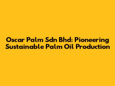 Oscar Palm Sdn Bhd: Pioneering Sustainable Palm Oil Production