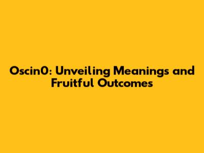 Unveiling the Fruitful Aspects of Oscin0