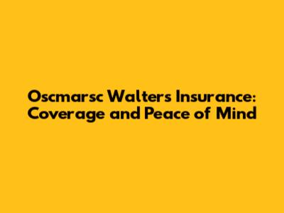Oscmarsc Walters Insurance: Coverage And Peace Of Mind