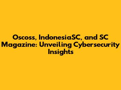 Oscoss, IndonesiaSC, And SC Magazine: Unveiling Cybersecurity Insights