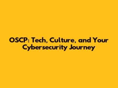 OSCP: Tech, Culture, And Your Cybersecurity Journey