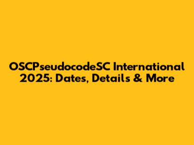 OSCPseudocodeSC International 2025: Dates, Details & More