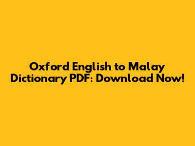 Oxford English To Malay Dictionary PDF: Download Now!