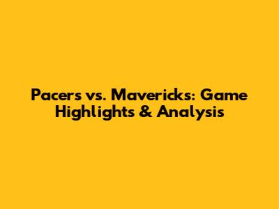 Pacers Vs. Mavericks: Game Highlights & Analysis