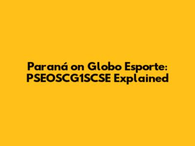 Paraná On Globo Esporte: PSEOSCG1SCSE Explained