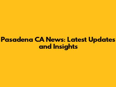 Pasadena CA News: Latest Updates And Insights
