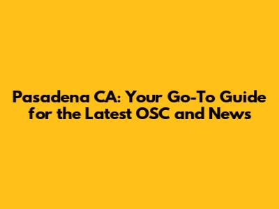 Pasadena CA: Your Go-To Guide For The Latest OSC And News