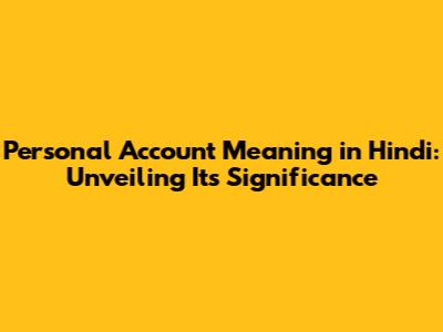 Personal Account Meaning In Hindi: A Complete Guide