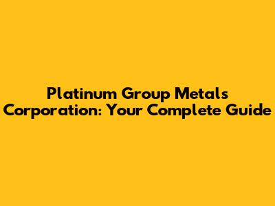 Platinum Group Metals Corporation: Your Complete Guide