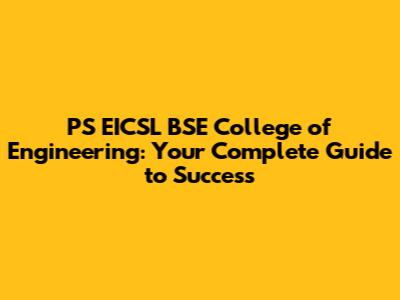 PS EICSL BSE College Of Engineering: Your Complete Guide