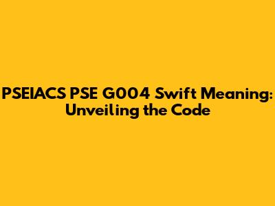 PSEIACS PSE G004 Swift Code: Decoded!