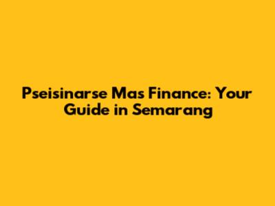 Pseisinarse Mas Finance: Your Guide In Semarang