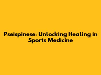 Pseispinese: Unlocking Healing In Sports Medicine