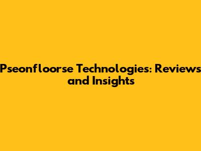 Pseonfloorse Technologies: Reviews And Insights