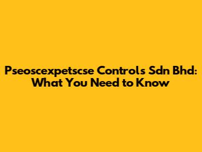Pseoscexpetscse Controls Sdn Bhd: What You Need To Know